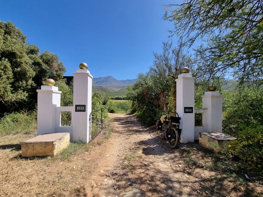 Heute geht es gute 60 Kilometer über Schotterpisten nach Matjesrivier, die letzte Station bevor ich endlich den Swartberg Pass erklimmen darf. Diese Strecke ist wirklich nach meinem Geschmack, Gravel, Gravel und noch mal Gravel soweit das Auge reicht. Die Piste gräbt sich durch die Hügel, zuerst in Richtung Norden und anschließend in Richtung Nord-Osten. Ich brauche noch nicht mal mein GPS, immer der Strecke folgen, nach 30 Kilometer – an der Künstlergalerie- Links abbiegen und weitere 30 Kilometer der Strecke folgen. Bevor ich in die Schotterpiste eintauche versuche ich im Ort noch irgendein Mückenschutzmittel zu kaufen, denn die letzte Nacht habe ich mich wie ein Filet Mignon für die Mückenkolonie gefühlt. Nach dem 6en Geschäft gebe ich auf, überall ist dieses Zeugs ausverkauft, es waren wohl zu viele Touristen da.