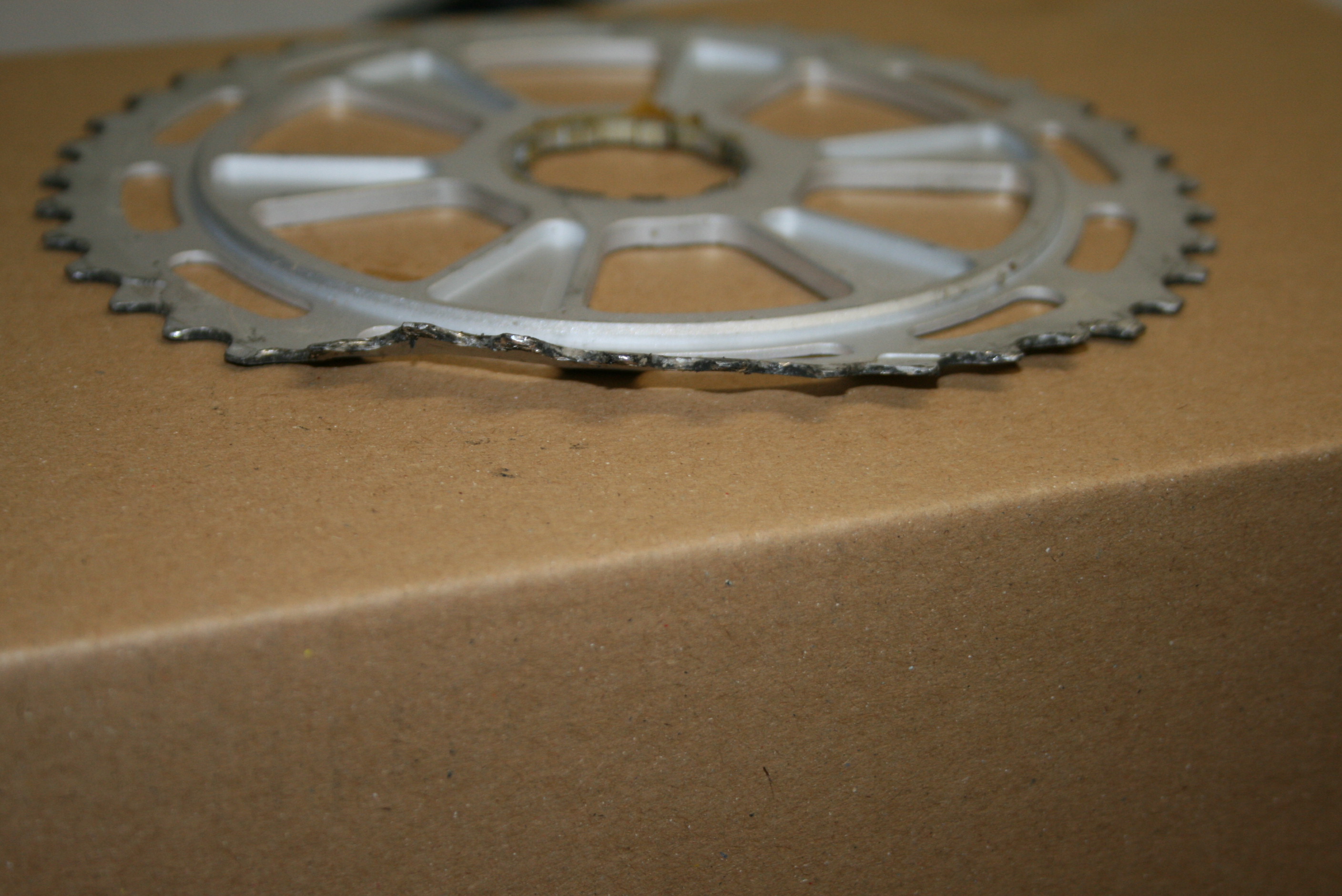 The 42 Cog was mounted but not used on the first 45 miles on flatt roads. So i went to the Ahr valley and tried once to climb a hill without baggage. After 4.83 Km ( 7 miles) the fun was over, the 42er cog simply folded over. The material ist definitely to weak, I’ll contact the manufacturer to ask iff he could make me one out off steel. To be contiunued ….