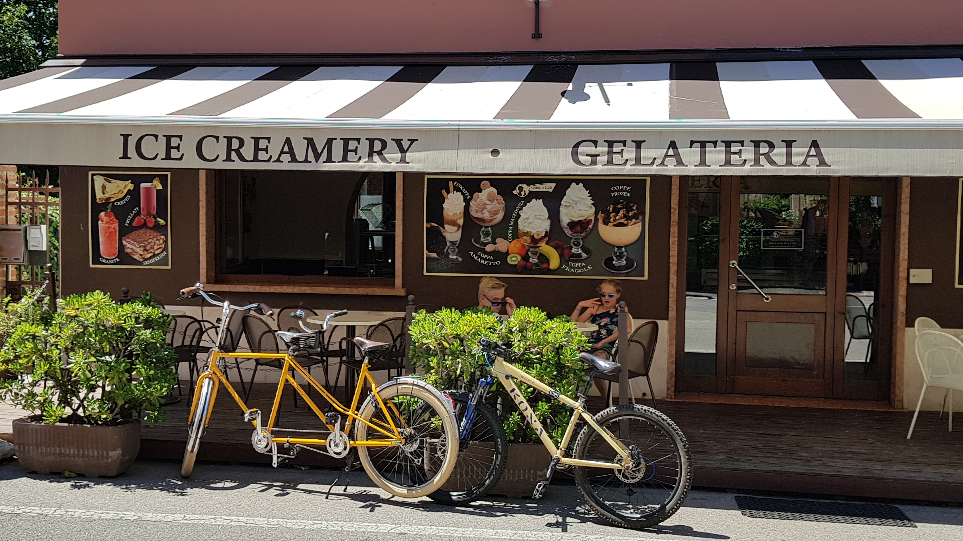 Während unseres Aufenthaltes in Italien haben wir auch das erste mal die Räder genutzt um ein paar mal in den Ort und zur Eisdiele im Nachbarort “Cola” zu fahren. Die Eisdiele dort war super, das Eis soooo lecker und die Portionen RIESIG.