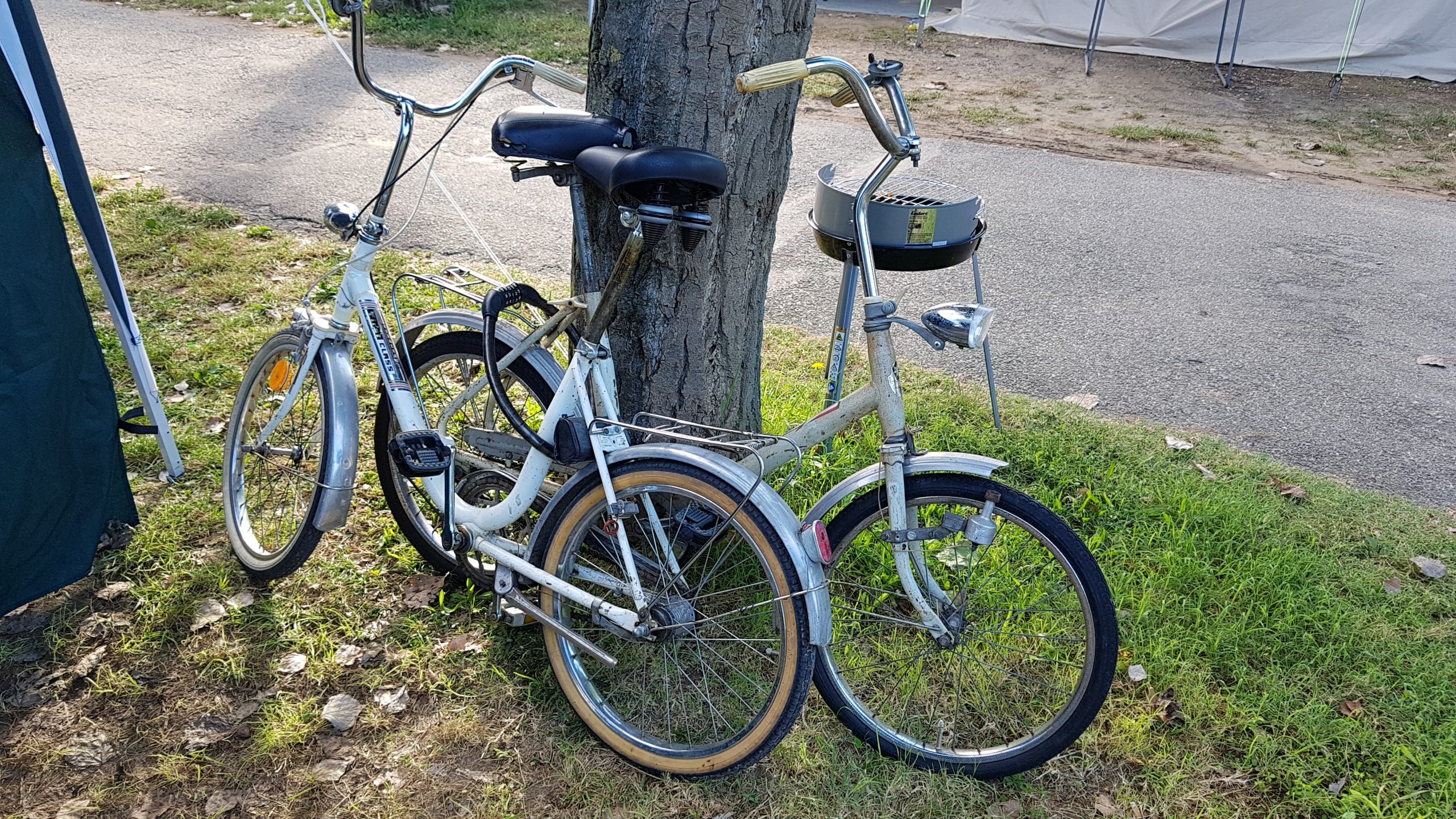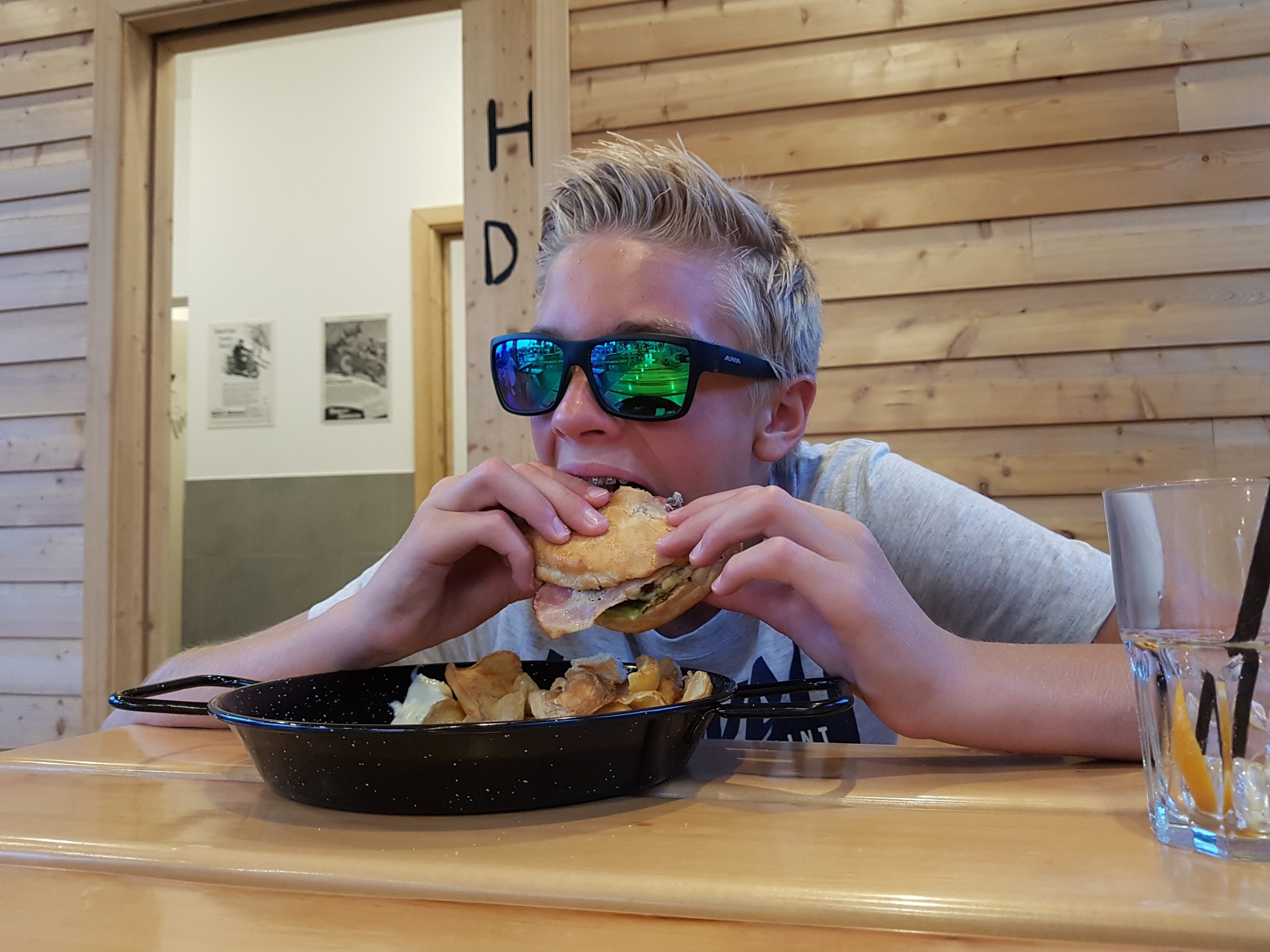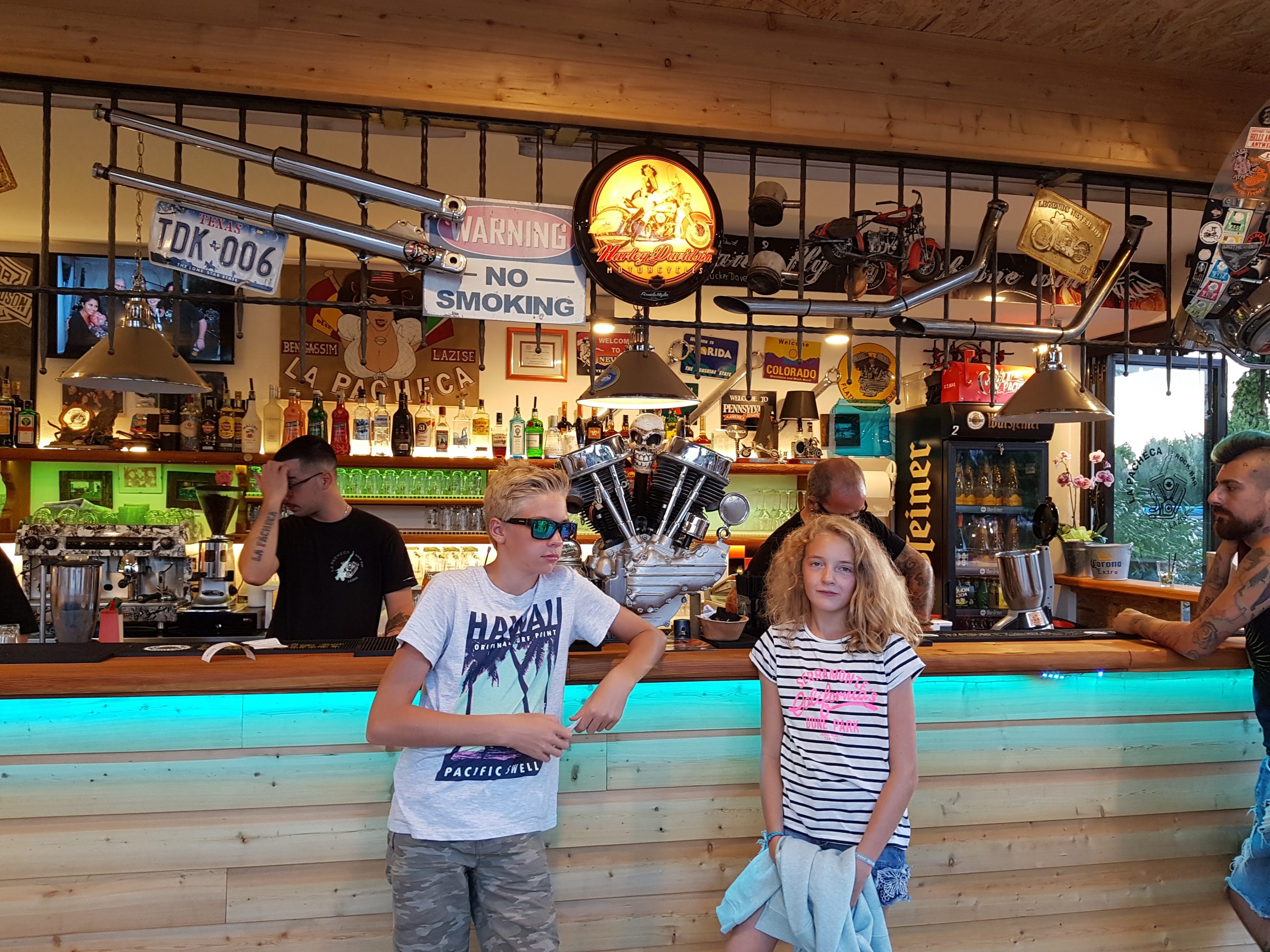 Ein Abend sind wir mit dem Tandem in den Ort gefahren und haben in einem Lokal etwas gegessen. Zuerst war ich ein wenig unsicher weil da lauter angemalte Menschen mit lauten Motorräder waren. Aber letztendlich waren die alle sehr nett und Papa fand die Musik sehr cool. Unser Tandem sah zwischen den Harley Davidson und Co dennoch ein wenig verloren aus.