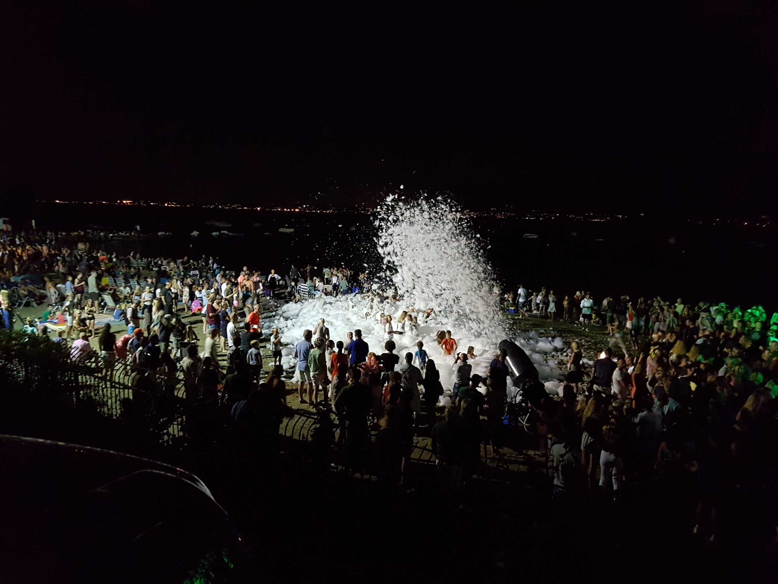 Am Letzen Abend haben wir die Party zum 60en Jubiläum des Campingplatzes miterleben dürfen, Schaumparty, Techno Musik, Riesen Trampolin und mega Feuerwerk inklusive.