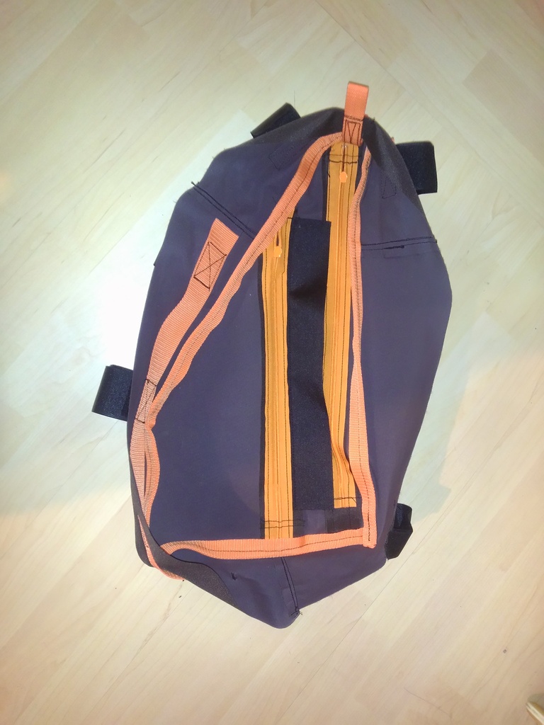 Trotz des wasserdichten Stoffes ist es mir nicht gelungen die Tasche so zu fertigen das es bei Regen im inneren trocken bleibt. Das Wasser (eher Feuchtigkeit) kommt an den Nähten und den Reisverschlüssen herein. Ich habe auf Reisen alles in der Tasche noch einmal in ZIP Beutel gepackt, so klappt es auch.