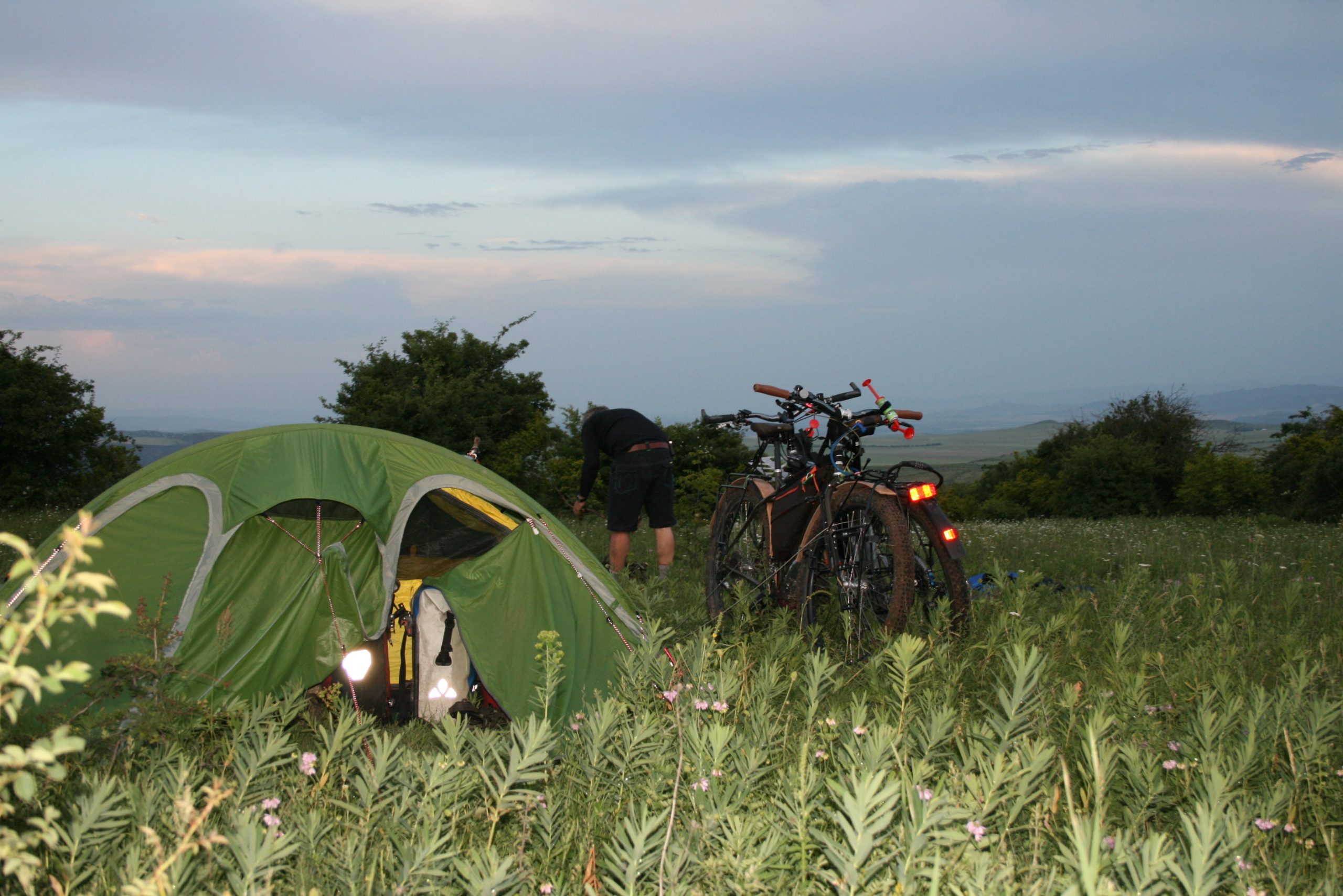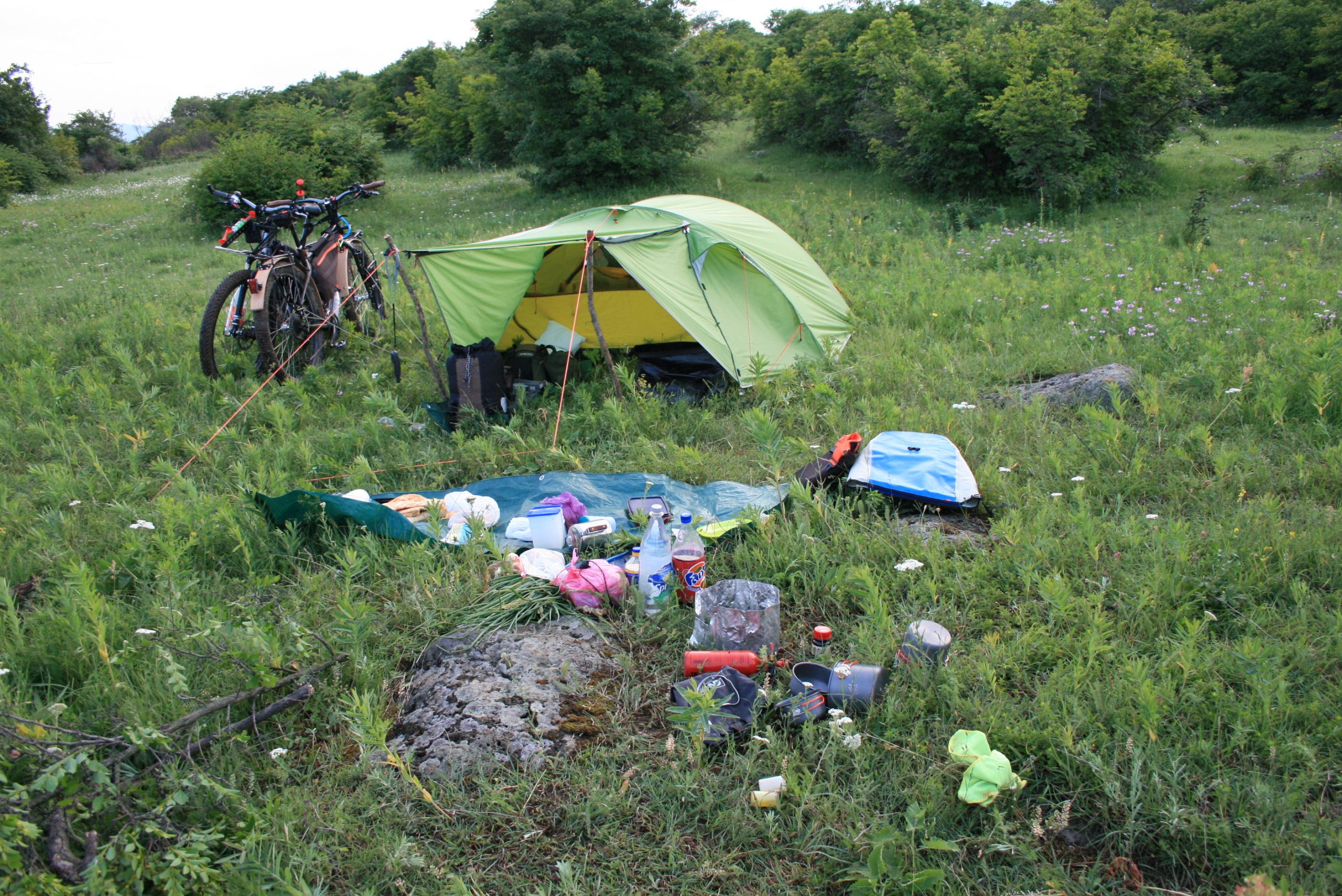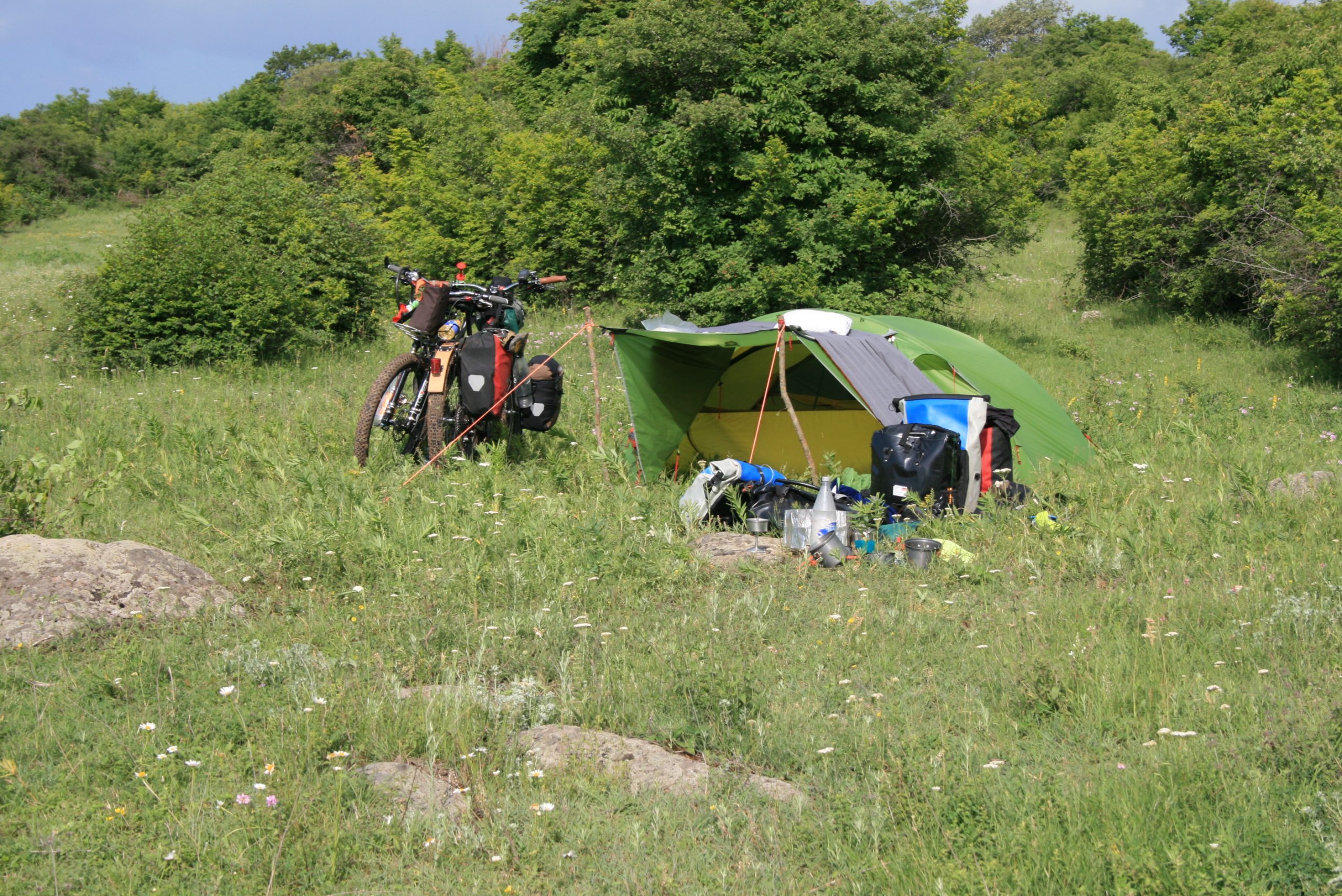 Der letzte Anstieg des Tages war anstrengend. Felsen, Matsch, Schiebepassagen und Dauerregen ließen das Spaß Niveau sinken. Als wir erschöpft das Plateau erreichten hatte zumindest der Dauerregen aufgehört und wir fanden einen herrlichen Platz für unser Zelt. Am nächsten Morgen entdeckte Josh auch die beschriebene Aussicht vom Plateau. Am Vortag waren wir schlichtweg zu fertig um es zu entdecken.