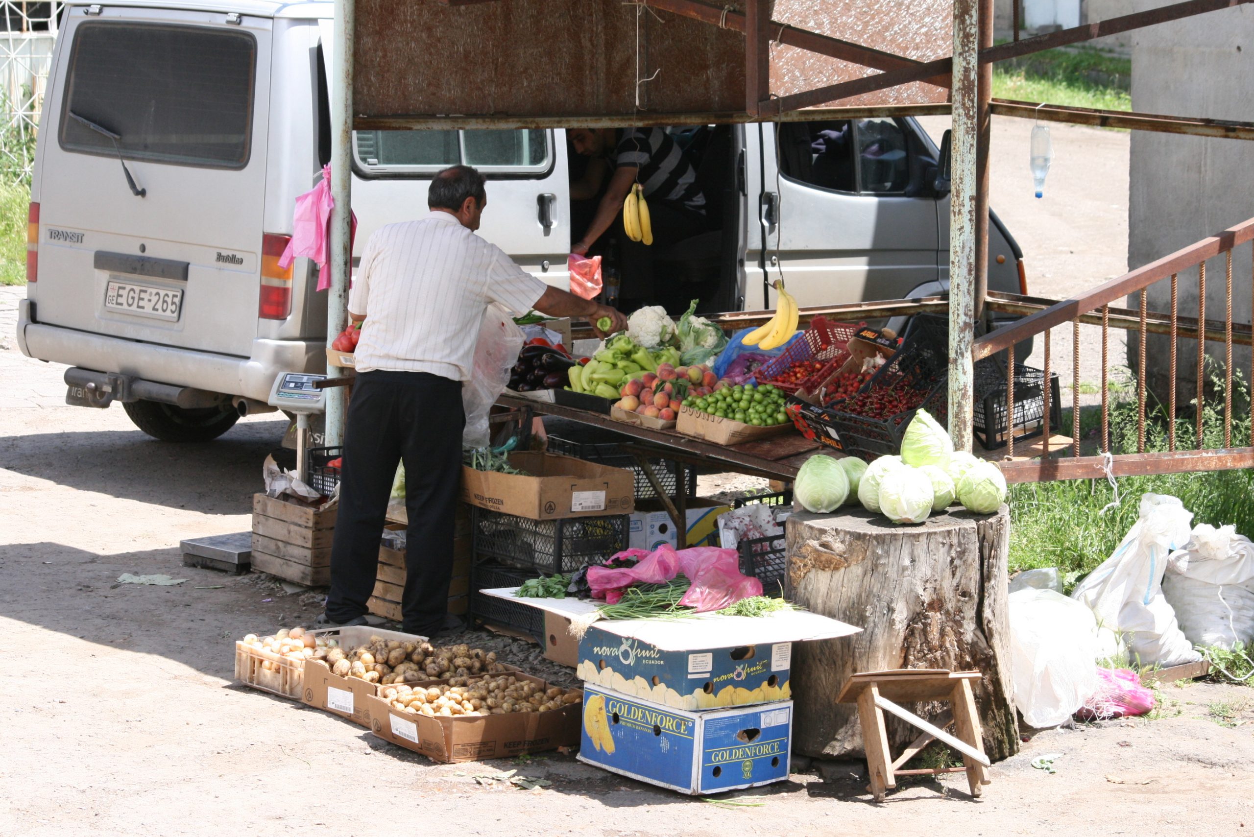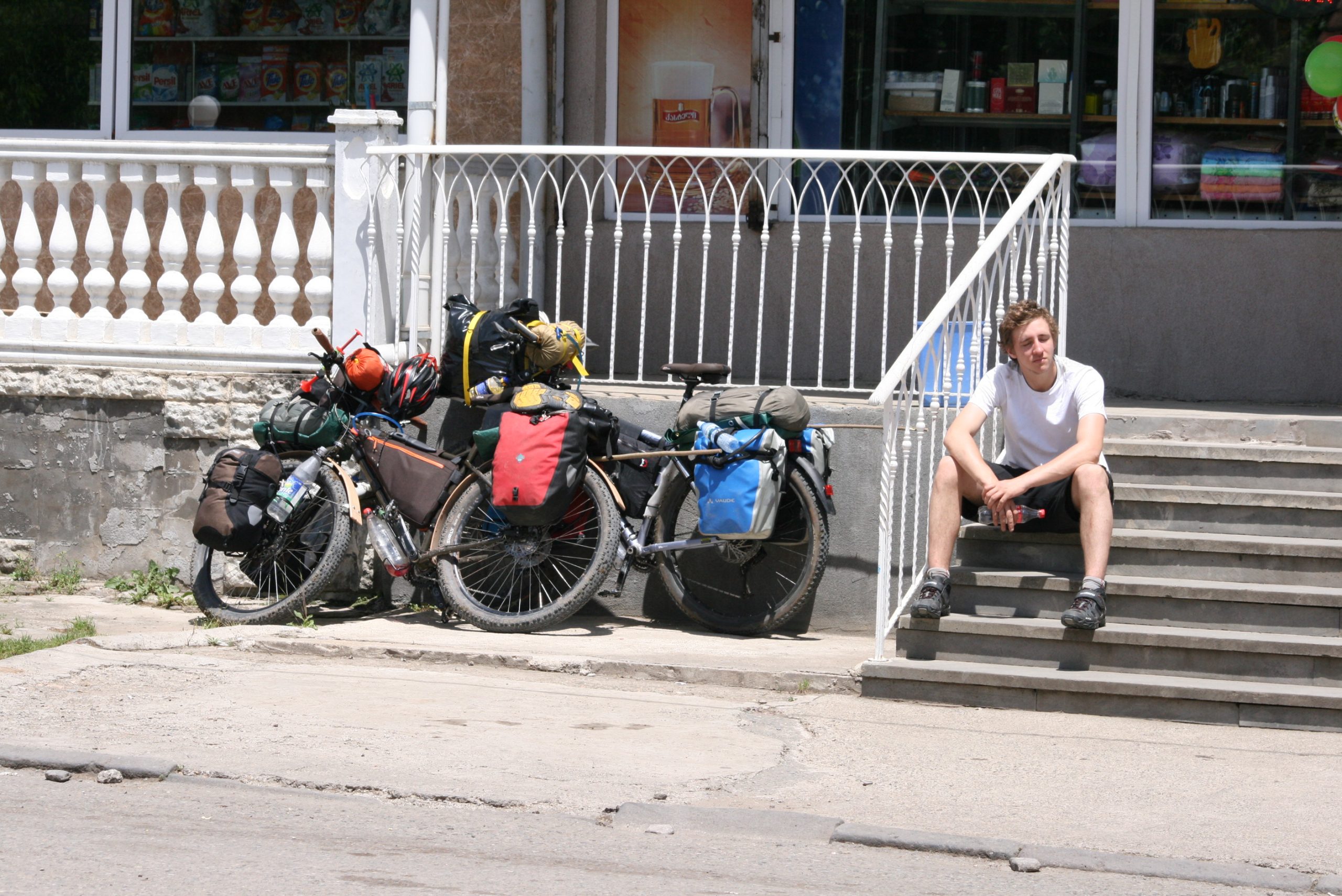 Der Tag beginnt mit gutem Wetter und einem gutem Frühstück. Jedoch graut es uns schon vor dem Aufstieg zurück nach Tetri Tskaro. Steil, felsig und matschig ist nicht die bevorzugte Strecke mit schweren Rädern, zumal gerade die Sonne rauskommt und der Planet brennt. 100 Hm vor Tetri Tskaro machten wir eine dringend notwendige Pause als ein Transporter vorbeikommt. Wir ergreifen die Chance und lassen uns bis in der Stadt mitnehmen. Das ist ein Motivationsschub und eine Zeitersparnis, denn wir wollen unbedingt zum See bei Tsalka. In der Stadt angekommen kaufen wir erneut Wasser- und Lebensmittel für den Tag ein.