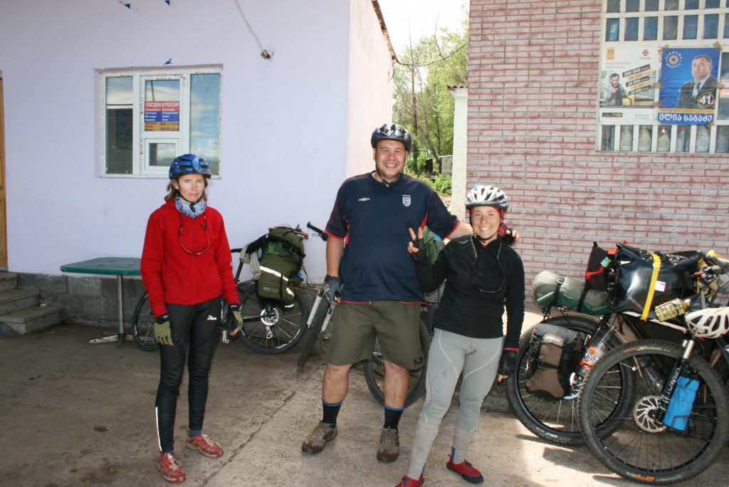 Am letzten Punkt vor dem Burnasheti Pass wo wir Verpflegung aufnehmen können, treffen wir auf andere Backpacker. Ein Kanadier der zu Fuß und in Crocs gerade durch Georgien wandert und 3 Ukrainische Radler. Die Radler haben das gleiche Ziel wie wir und wir werden am Abend noch gemeinsam am Lagerfeuer in 2100 m am Tabatskuri See sitzen.