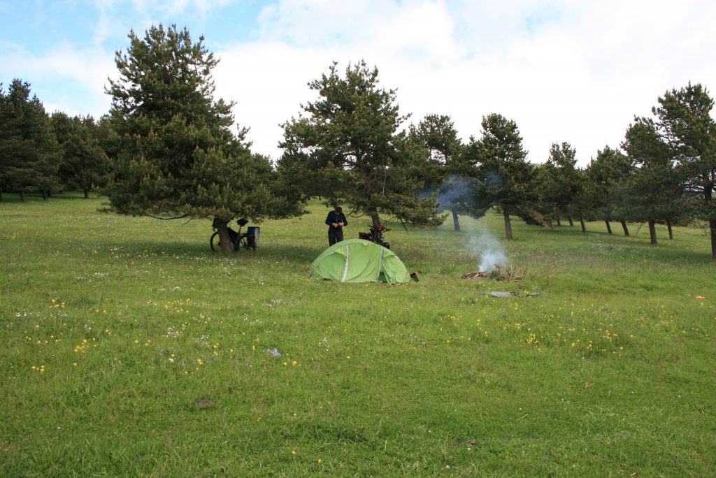 Letztendlich kommen wir unversehrt am See an und treffen noch auf eine israelische Reisegruppe die unsere Räder für Elektrobikes hält :-). Als die Gruppe den Platz verlässt bauen wir unser Lager auf. Ein wenig später kommen die Ukrainische Radler, 2 Frauen und ein Mann auch an. Wir haben einen geselligen Abend gehen aber Angesicht der bitteren Kälte (Gefühlte 3 Grad) früh schlafen.