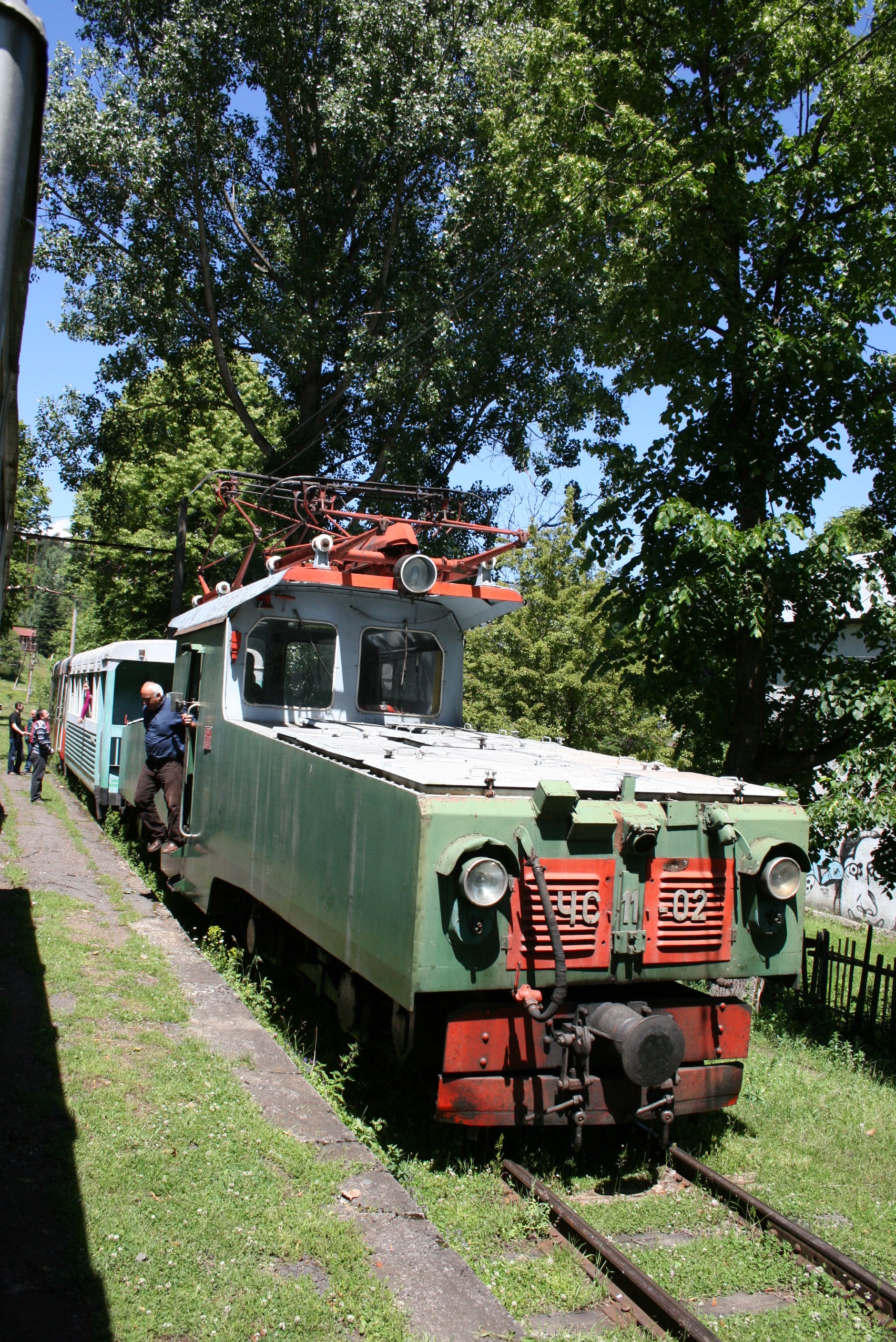 Wir haben am Vorabend unserer Abreise im Restaurant vom Kellner erfahren das es eine Bimmelbahn von Bakuriani nach Borjomi gibt. Selbstverständlich wollen wir dieses Transportmittel nutzen und erkundigen uns nach den Abfahrtszeiten. Der eigentliche Fahrplan ist für uns nicht aufschlussreich, daher kommunizieren wir via Übersetzungsapp mit ein paar am Bahnhof anwesenden Georgiern. Wir erfahren das wir um 09:45 Uhr am Bahnsteig sein müssen und die Abfahrt des Zuges um 10:00 Uhr ist.