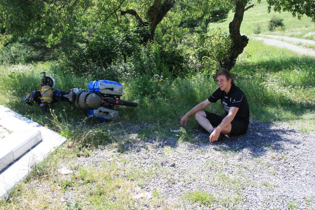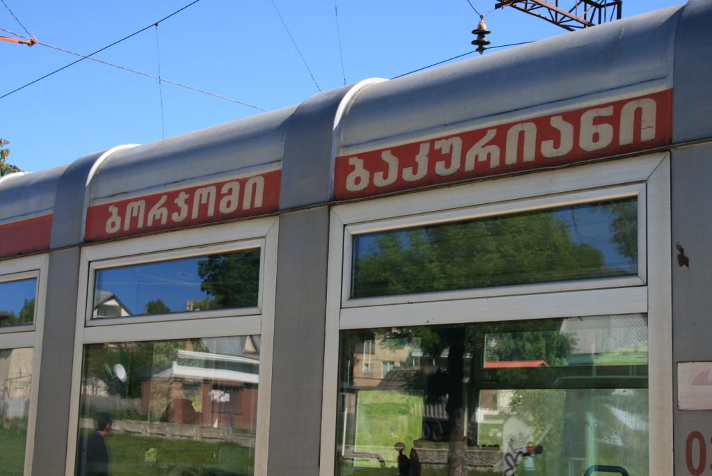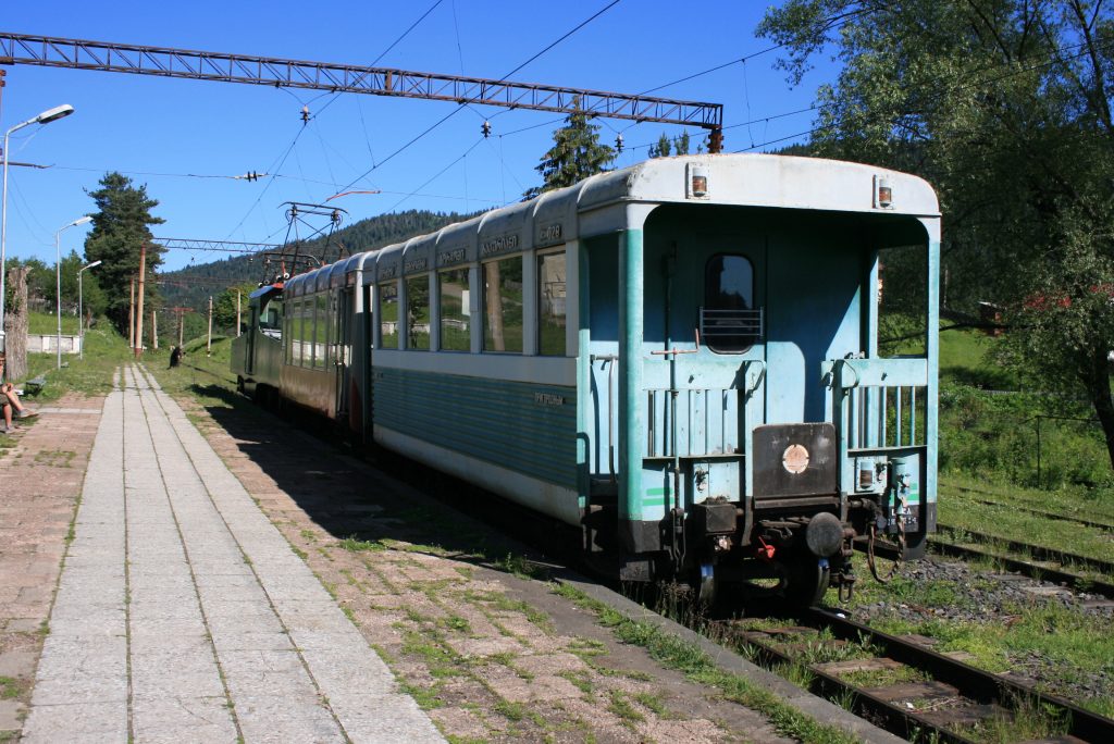 Wir sind pünktlich am Bahnhof und der Zug ist es auch. In der Zeit wo die Lock umrangiert klären wir mit der Hilfe einer Amerikanerin, die fließend russisch spricht, dass wir mit unseren Rädern mitfahren können. Das verladen geschieht in völlig entspannter Atmosphäre. Im nachhinein erfahren wir das wir uns mit unseren Rädern im Wagon der ersten Klasse befinden. Der Gesamtfahrpreis für uns und die Räder beträgt 6 Lari, das sind 2,40€. Die Strecke geht über 45 Kilometer durch die Berge. Bei der Reisegeschwindigkeit des Zuges benötigen wir 2 Stunden und 45 Minuten. Unterwegs hält die Bahn ein paar mal mitten im Wald an, um Passagiere Ein- oder Aussteigen zu lassen. Es war die bisher entspannteste Fahrt in Georgien. Wir haben es sehr genossen. Sobald wir in Borjomi angekommen sind geschieht das entladen in genau so entspannter Atmosphäre wie das Beladen.