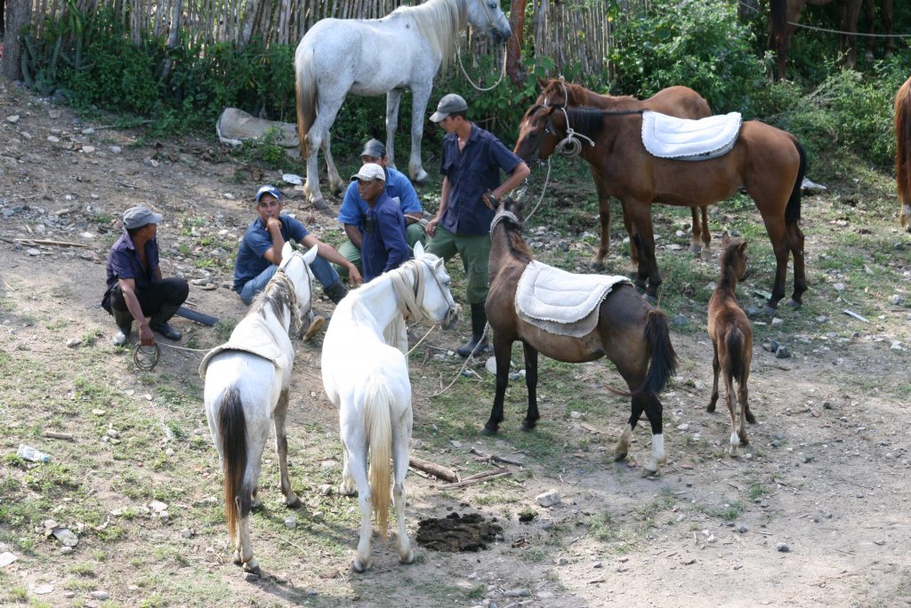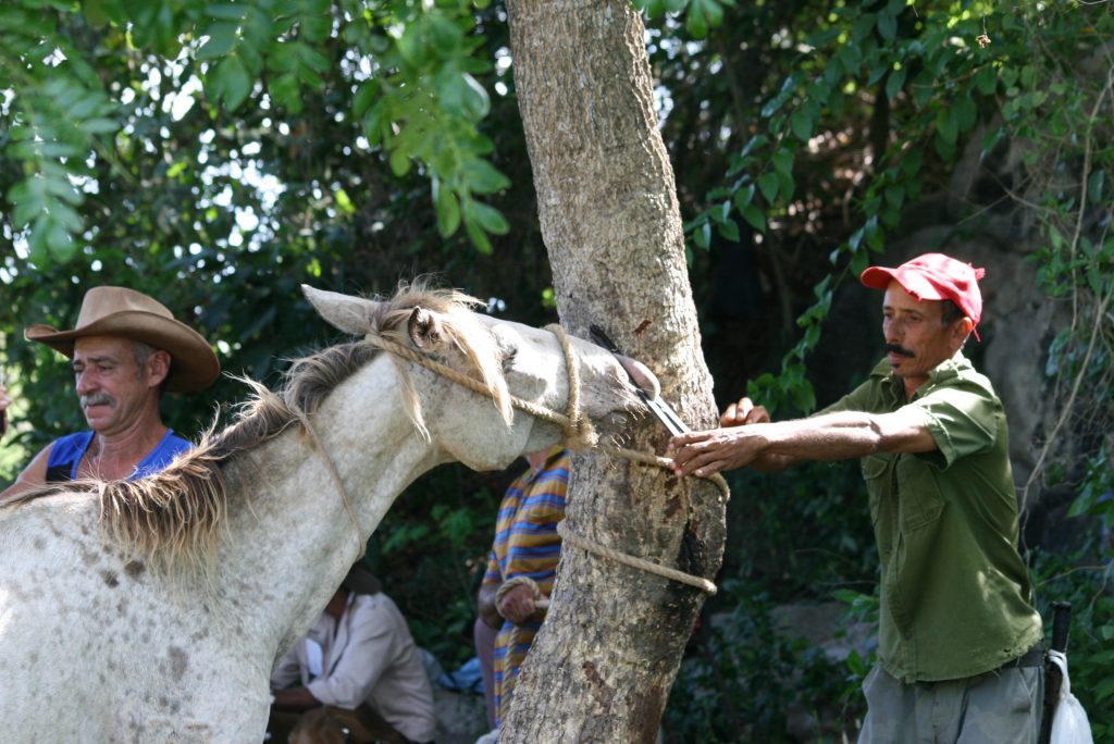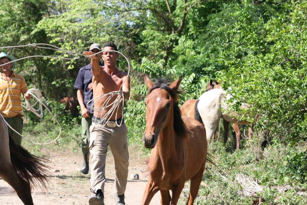 Mittendrin war es manchmal schwierig Bilder zu machen denn es war ein Tumult, die Pferde waren unruhig oder gingen durch, dazwischen die Chauchos mit Lasso und schwingenden Hüten. Wir wurden aufgefordert mehr Bilder zu machen und taten dies. Pferdefreunde werden die Bilder mit der Nasenklemme schockieren, in Cuba so normal wie die Tiere zu füttern.