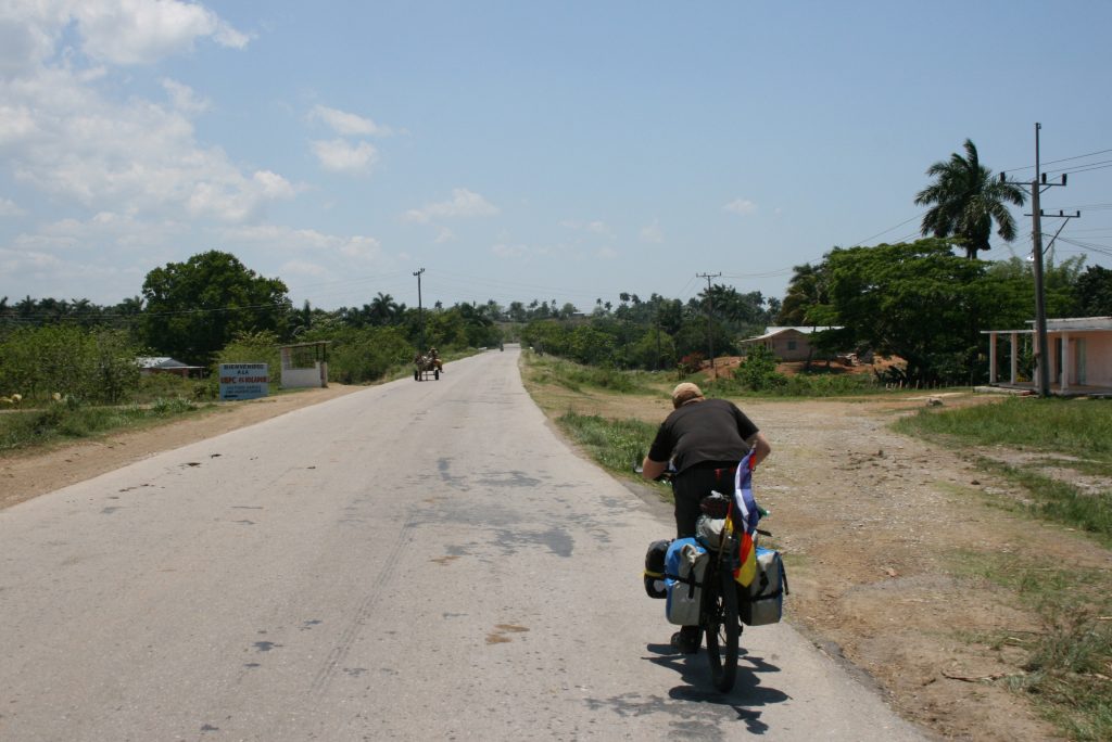 Wahrscheinlich war mein Hirn durch die immense Sonneneinstrahlung schon auf die Größe einer Erbse geschrumpft denn 10 Minuten später passierte das nächste Maleur. Ich wollte im Supermarkt neue Wasserreserven kaufen, offensichtlich war nur Sprudelwasser vorrätig, an der Kasse waren 13 CUC fällig. Ich dachte es liegt an dem Preisniveaus in diesem Dorf aber als wir das Sprudelwasser in die Trinksäcke füllen wollten offenbarte sich unser unglück: es handelte sich um übersüßte Zitronenlimonade. Die Kilometer bis zur nächsten Wasserversorgung waren die Hölle, 36 Grad im Schatten, leichte Anstiege, viel Gepäck und nur aufgeheizte Zitronenlimonade zu trinken.
