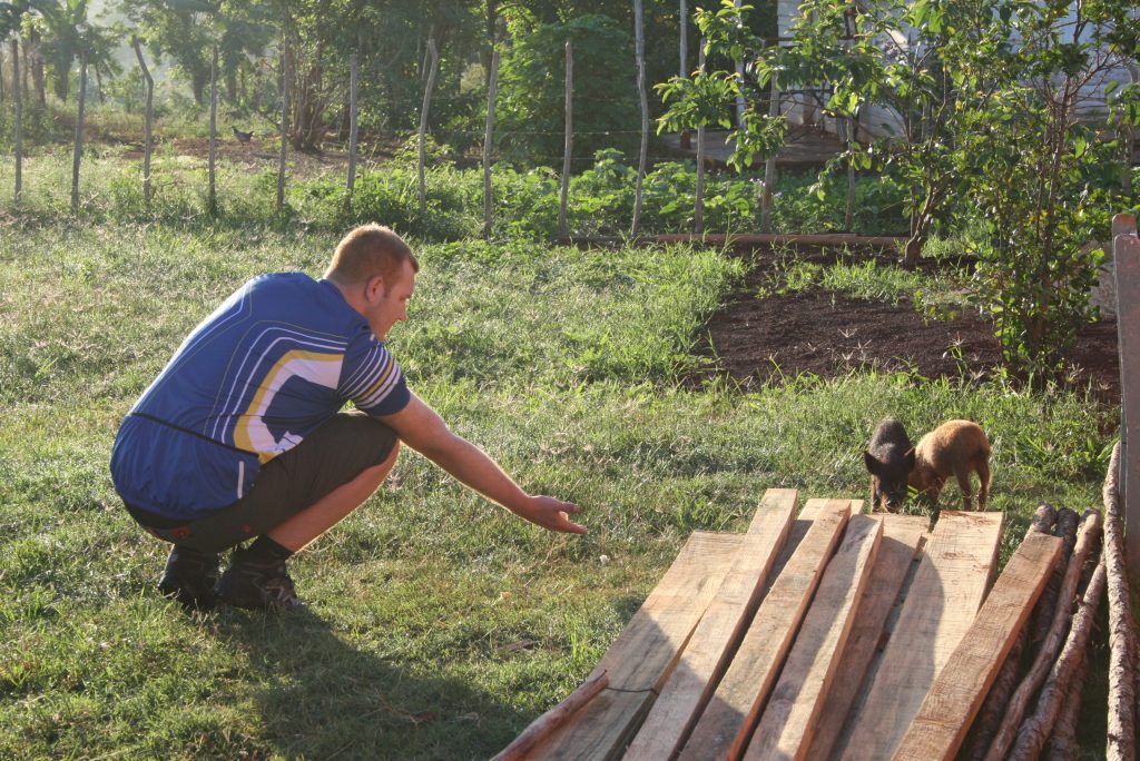 Die Mittagspause brachte uns eine freundliche Begegnung mit einem Ananasbauern der uns eine schälte und 2 schenkte. Er wollte Ric davon überzeugen 5 Tage auf seinem Feld zu arbeiten, als Lohn sollte es eine “Mulata” und 2 Ananas, das Cubanische Viagra, geben.