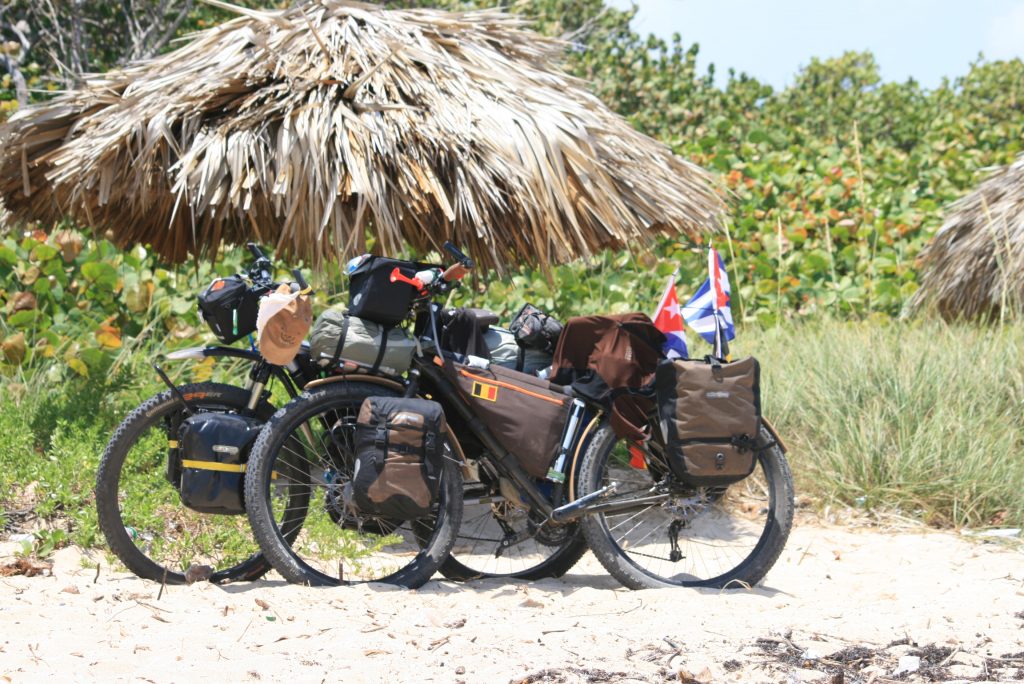 Wir sind früh losgefahren, eine kluge Entscheidung so ist nicht viel los auf den Straßen und die Temperatur ist mit 28 Grad noch erträglich. Nach ein paar Kilometern einrollen haben wir noch ein paar Dinge gerichtet wie z.B. das befestigen der Fahnen oder optimaleres Anbringen der Befestigungsgurte. Bei Booten ist es üblich die lokale Landesfahne und darunter die jeweilige Landesfahne wo das Boot registriert ist anzubringen. Genau so haben wir es an den Rädern gemacht Cuba/Deutschland bei Ric und Cuba/Belgien bei mir. Das bringt uns richtig Sympathie bei den Kubanern, vor allem bei den LKW- und Busfahrer, die halten beim überholen freundlich Abstand zu uns.