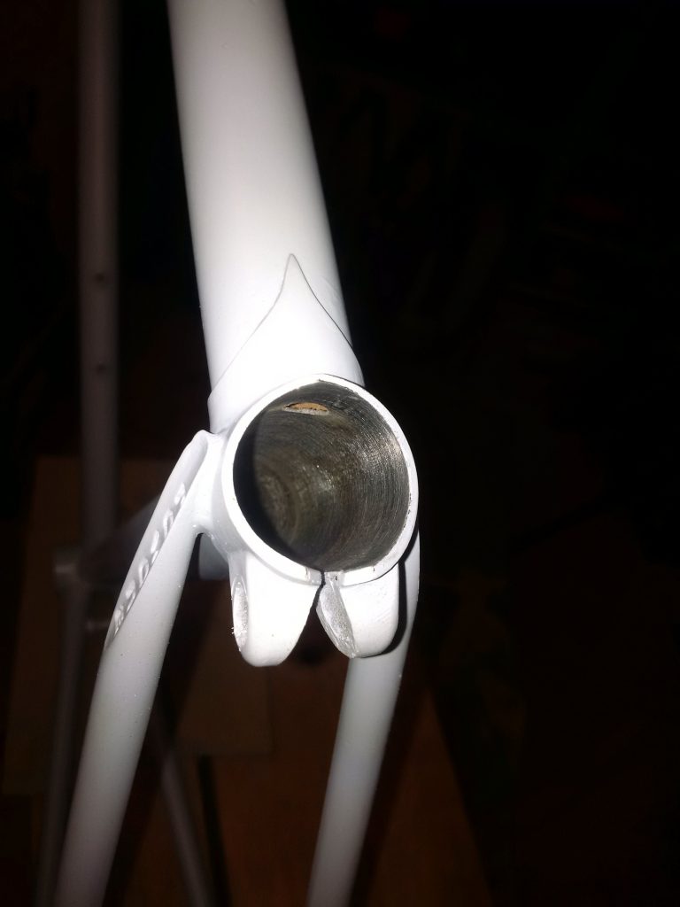 Die anderen Rohre wurden an der Innenseite mit einem Rostumwandler behandelt, nach dem Lackieren wird Hohlraumwachs folgen. Jetzt gerade ist der Rahmen noch nicht lackiert sondern lediglich grundiert. Das bleibt vorerst auch so, zumindest bis das Rad komplettiert ist und ich sicher bin das ich am Gefährt nichts mehr löten oder schweißen muss.