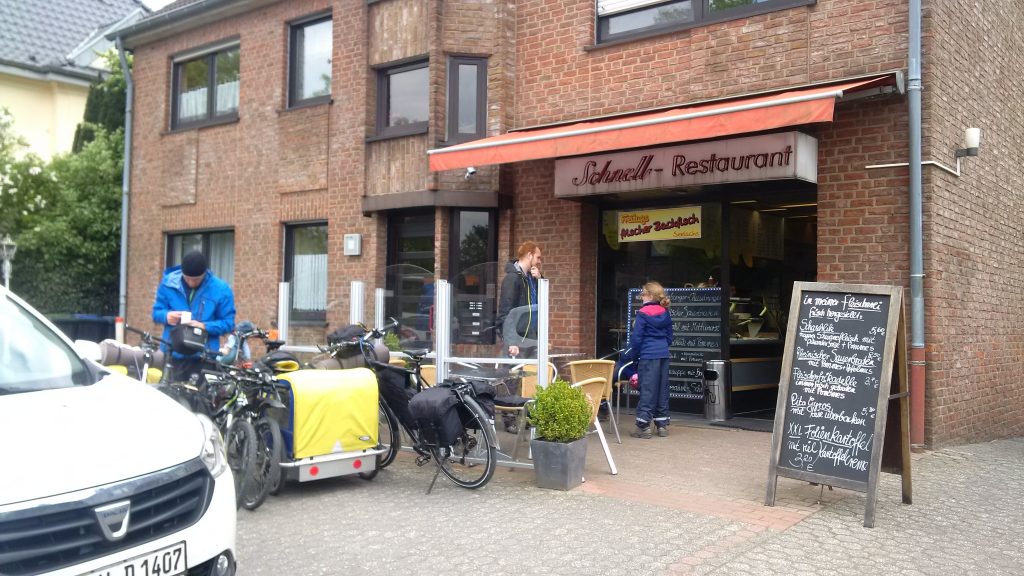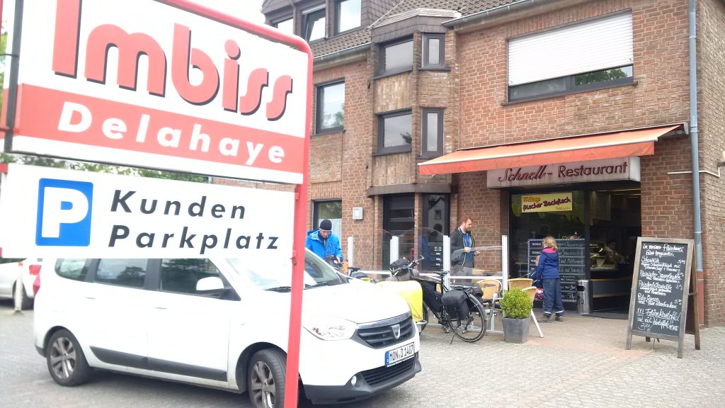 In Wallheim, gute 6 Kilometer vom Ziel entfernt machen wir eine Mittagspause und erfahren im lokalen Imbiss was Zucht und Ordnung bedeutet. Die Regimentsführung macht bei der geringsten Körperbewegung deutlich was erlaubt ist und was nicht, wir verköstigen unser Mahl so unauffällig wie möglich und hoffen das dies nicht die Vorboten fürs traute Heim sind ;-).