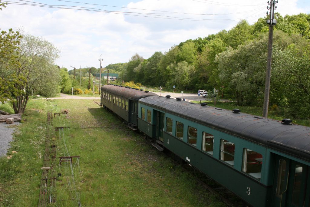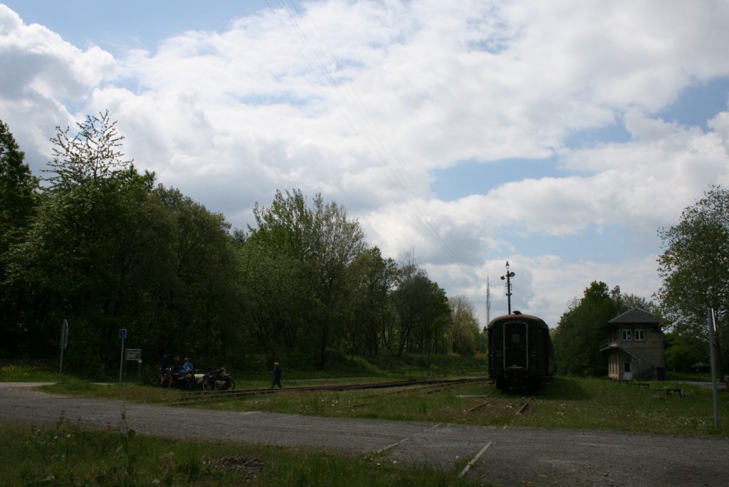 Nach dem alten Bahnhof von Monschau geht es vorbei an Mützenich, einer ehemaligen Schmugglerhochburg. Auf dem Teilstück zwischen Konzen und Lammersdorf nimmt die Waldkulisse ab und gibt dafür den Blick auf die Ausläufer der Eifel frei. Weiter in Richtung Roetgen verlassen wir quasi die Eifel und fahren wieder durch den Wald im deutsch-belgischen Grenzgebiet. Danach geht es weiter in Richtung Raeren wo wir an dem teilweise noch bestehenden Schienennetz das Bahnhofsgebäude und einige der dort verbliebenen alten Züge besichtigen. Wir befinden uns heute wieder im Wechselspiel der Grenzverläufe und wissen nicht immer mit Sicherheit in welchem Land wir uns gerade befinden denn mehrere Male durchquert die Vennbahn auf dieser Etappe deutsches und belgisches Territorium.